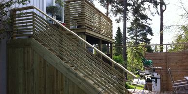Professionell byggnation av trä- och kompositterrasser för uteplatser, trädgårdar och balkonger.